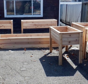 Western Red Cedar Raised Bed Planter Boxes, Canoe and Kayak Paddles, Laminated Hardwood Cutting Boars & Cheese Boards, Drink coasters and much, much more.